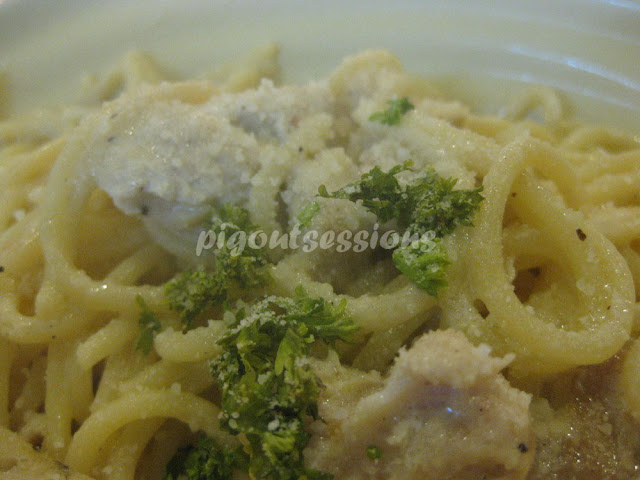 After realizing that they serve onion rings and knowing that I haven't tried a single onion ring all my life, I knew I had to order one. Our onion rings were served first while we were waiting for our pastas.