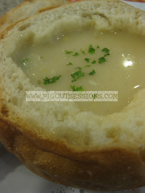 Yes! You can enjoy a steaming hot soup and eat your bread too! Enlighten me since the grammarian in me is conflicted. Should it be "Soup IN a bread bowl" or is "Soup ON a bread bowl" already correct? OR are they both acceptable?