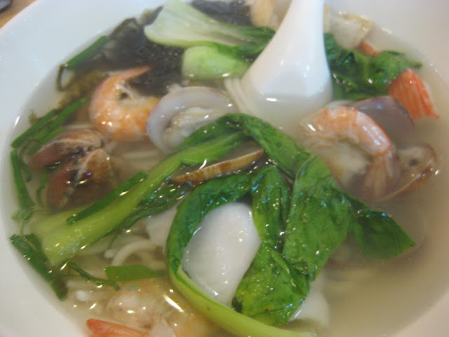 This was the star of the day, our favorite, their seafood noodle soup. Hand made and hand pulled noodles, with refreshing soup and loaded with vegetables and lots of seafood. Just goes to show that they don't scrimp on the ingredients! You can eat this as is or add a little spiciness with chili flakes (in oil? haha, I'm not sure) I prefer mine to have a little kick of spiciness.