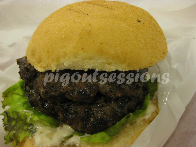 I couldn't imagine myself being able to finish this, imagine 2 times the beef! but BF did! He also swears that though the bun could use a little upgrading and the patty looks a bit burnt, it was like heaven in his mouth.