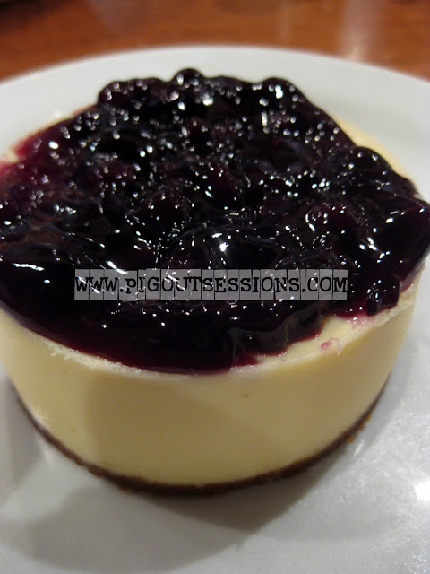 What I really was eyeing was their Strawberry Cheesecake but I was informed it wasn't available. So I opted for my next bet, their Blueberry Cheesecake. Now let me tell you, I haven't ordered a lot of Cheesecakes since my love affair with food started, because one time I was in Aruba Bar & Restaurant, their cheesecake was so frozen I didn't get to enjoy it.