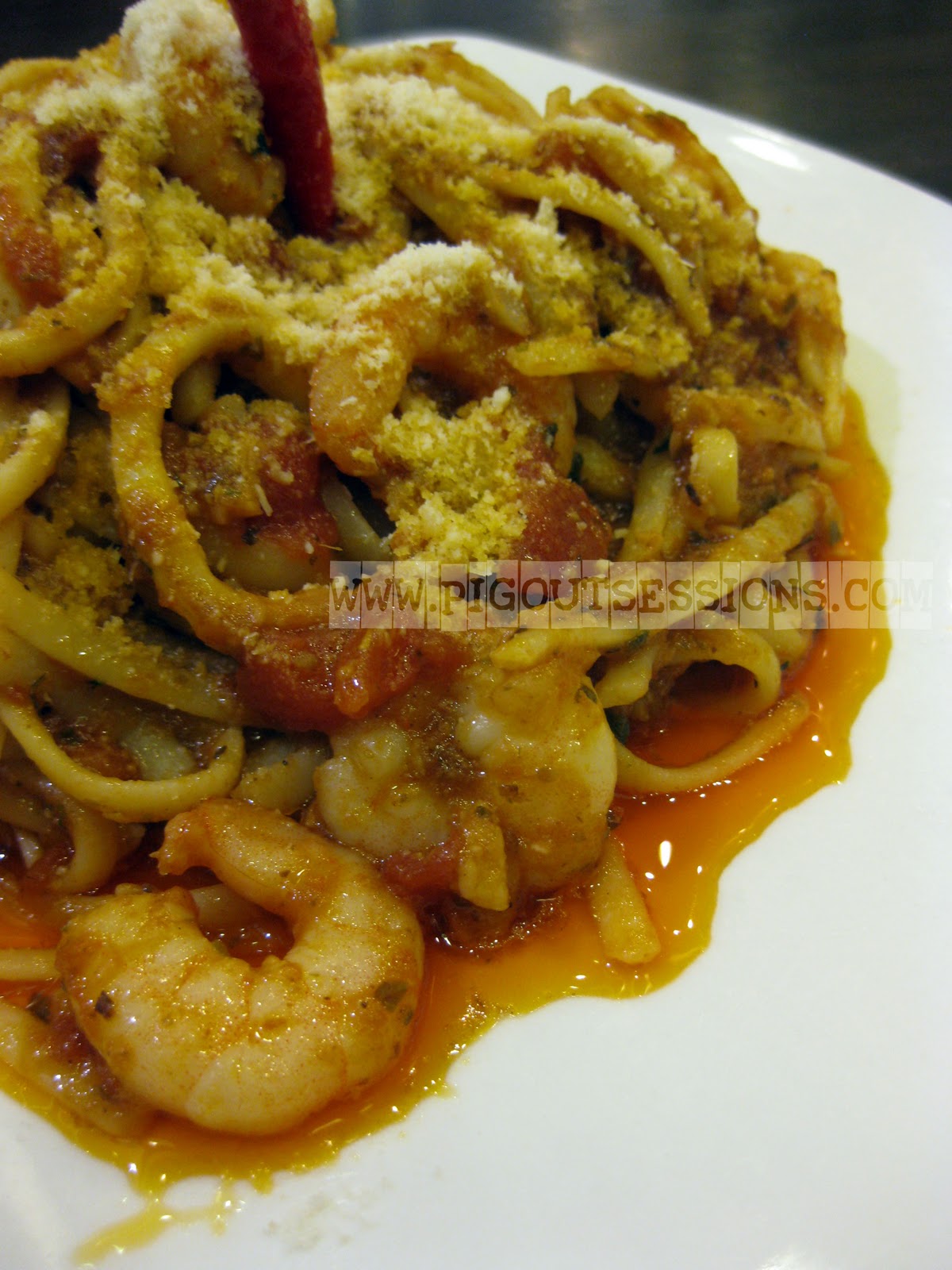 Another thing we have in common is our love for spicy food so we shared an order of their Spicy Seafood Tutto de Mare. When I read in the menu that it was "spicy" I was thinking that it really was. Imagine to my amusement or chagrin that they just placed a red chili pepper on top as garnishing and the pasta wasn't spicy at all!