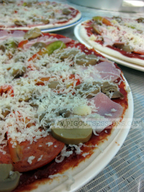 I'd like to apologize for the less than stellar photo quality, maybe my hands were just too tired chopping ingredients and decorating the pizza, plus! hurrying up so that everyone can taste it whilst it was hot off the oven, err turbo broiler. The bacon and other toppings got crunchy this time, but what we didn't gauge correctly was the amount of cheese needed. All in all, we made 4 pizzas and used only 1 pack of mozzarella cheese, well, lesson learned. Our home made pizza [version 3] will be sooo good, I'm sure of it.