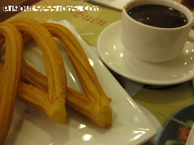 I felt like I was in a trance, reaching for a crisp churro and dipping it ever so often in the heady, rich, addicting, bittersweet, hot chocolate. Each bite is intoxicating and sends off a happy buzz inside. This is definitely comfort food material, though I doubt I will wait for a long time to have an excuse opportunity to have another serving and I have no intention of sharing. Till the next pig out sessions! :)