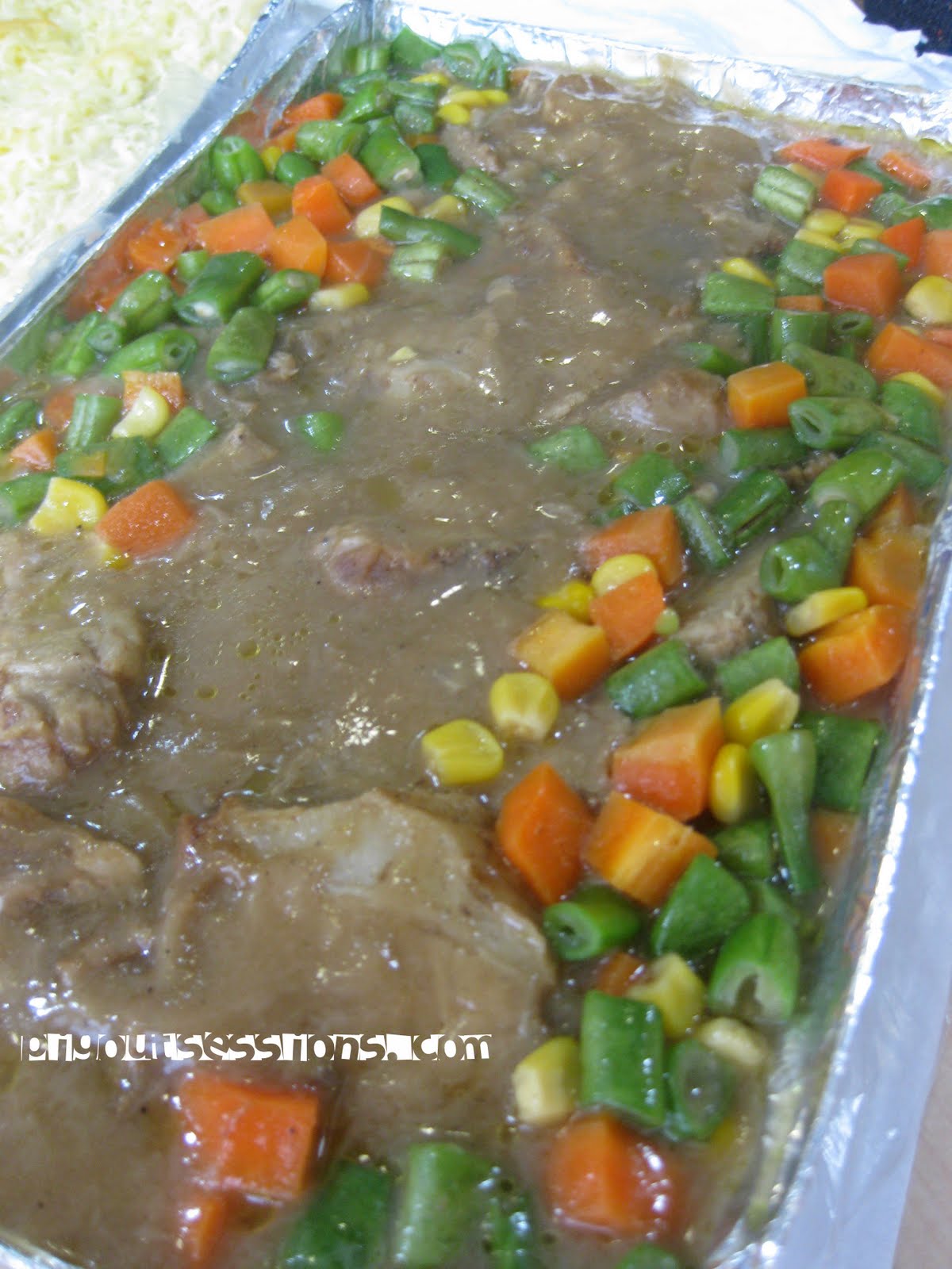 Since I don't eat tripe, I made do with the sauce and the veggies. CCME's Kare-Kare was good enough, although I would have wanted the sauce to be a wee bit nuttier. Just my two cents. [Why do I feel I have a pessimistic comment for almost every other food I eat?] :P