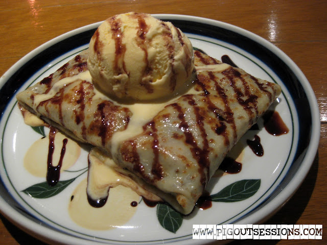 La Pinay PHP 168.00 or USD 3.85. Make no mistake in underestimating this crepe. It might look ho-hum from the outside but oh so sinful once you take your first bite. I know because I fell in love with the gratifying combination of mango slivers resting inside layers of folded crepe, topped with vanilla ice cream and glazed with chocolate sauce.