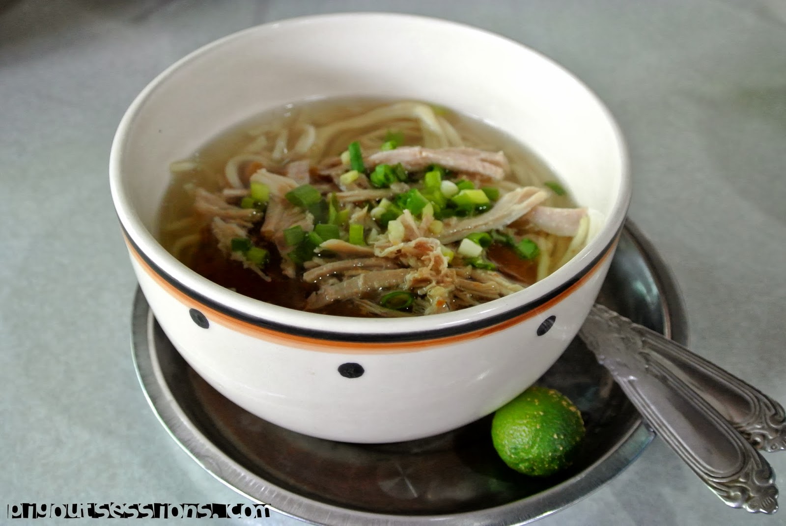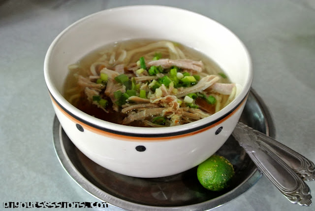 Service was pretty fast and I was served with my steaming, hot bowl of Kinalas. I could already tell it wasn't your ordinary noodle soup. Rich broth enhanced further by the brown paste (that you have to mix in) poured over firm noodles and topped with scallions, garlic, and pulled apart chicken meat. It definitely was not your typical mami.